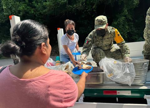 "Amigas y amigos, estamos trabajando en coordinación con la SEDENA para hacer llegar alimentos a las familias afectadas por la creciente del río. Sabemos que muchas personas se quedaron sin un lugar donde preparar sus comidas, por eso, como Gobierno Municipal, estamos abasteciendo la cocina móvil con todo lo necesario para garantizar que nadie se quede sin alimento", expresó Cabañas Hernández.