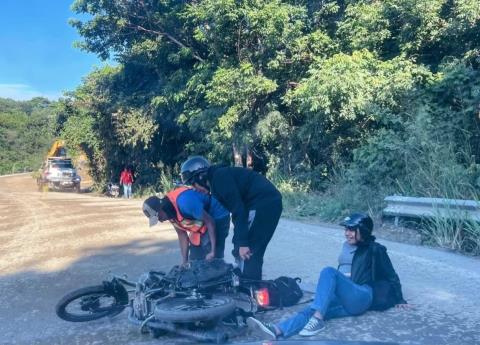 El incidente ocurrió la mañana del miércoles, cuando se reportó que una joven, que circulaba a bordo de una motocicleta Italika FT150, color negro y con placas del estado, perdió el control y derrapó debido al pavimento mojado y la falta de precaución.