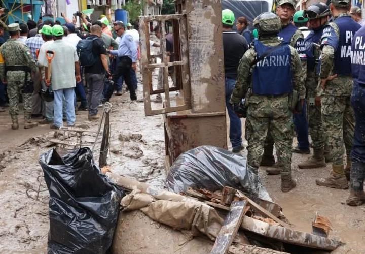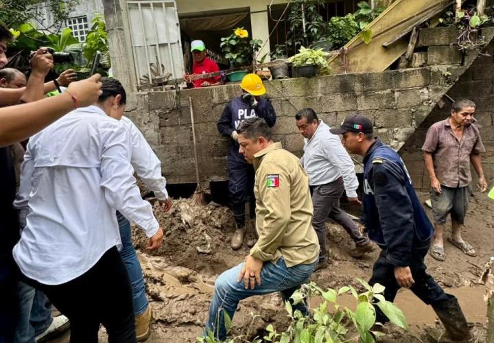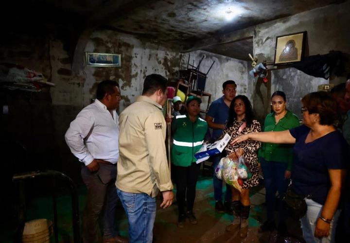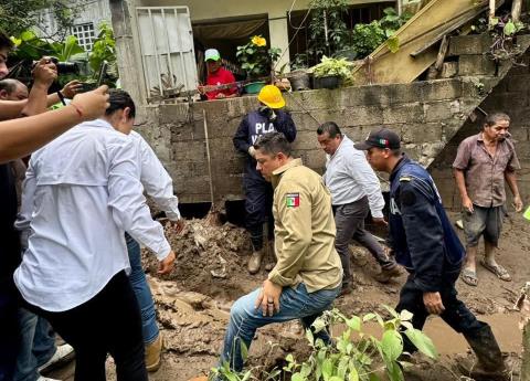 Tras instruir mantener un operativo permanente de ayuda en los municipios afectados, Ricardo Gallardo visitó el barrio El Carmen y la colonia La Estrella, acompañado por autoridades municipales, estatales y personal de la Secretaría de la Marina y el Ejército Mexicano quienes implementan el Plan DN-III-E en coordinación con Protección Civil Estatal, en estas zonas, donde el nivel del lodo superó los 30 centímetros por lo que se realizan labores de retiro de escombros, saneamiento y desinfección