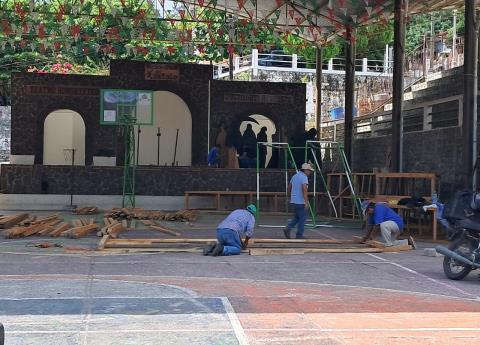 Los trabajos se están llevando a cabo en la cancha municipal, ya que muchas de las ornamentas serán instaladas tanto en este espacio como en la explanada del Ayuntamiento.