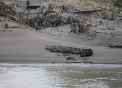 Tampacán, S.L.P. – En días recientes fue avistado un peligroso reptil en la ribera del río Moctezuma, aparentemente desplazado por las intensas lluvias registradas en la región. El ejemplar fue identificado como un cocodrilo y se le observó en las inmediaciones de las localidades de Chimemexco y Cuayahual.