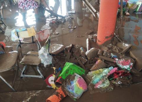 El Jardín de Niños "Lucas Balderas", ubicado en la localidad de El Hulero, fue gravemente afectado, quedando con pérdidas totales en materiales didácticos y mobiliario, además de haber quedado totalmente inundado por lodo.
